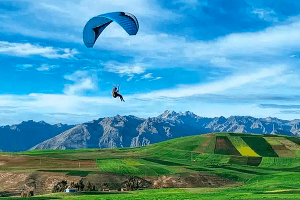 Pick up from the hotel at 8 am, to go to Chincheros, to the Sacro Hill located in the Sacred Valley of the Incas at an altitude of 3,800 meters above sea level, there our guide will give us a safety talk and instructions for our flight, after a few practices we will take the big leap, in this Mountain with unique characteristics with a slope of 70 degrees or more, it has a drop of 600 meters, the landing zone also has a completely clean area except for the cultivated areas of approximately 20 hectares, this mountain It is one of the safest in its topography, this viewpoint is very beautiful because it has a majestic landscape around the Sacred Valley of the Incas, having experience is not necessary since you will be accompanied by our pilot, you are only responsible for having fun in this experience, for In the afternoon we will return to Cusco, arriving at approximately 2 pm.